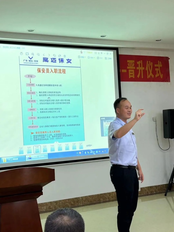 最后由業(yè)務部負責人趙東詳細講解了公司分隊管理的標準作業(yè)流程和各項規(guī)章制度。